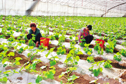 3月9日,在總投資1.2億元的原平市雙惠現(xiàn)代農(nóng)業(yè)科技示范園區(qū)的蔬菜大棚里,員工們正在對“香妃”、“芝麻蜜”香瓜進(jìn)行管理。在“冬季行動(dòng)”中,該園區(qū)真抓實(shí)干,到處是一派繁忙景象,目前一棟棟大棚里各種蔬菜、瓜果長勢喜人。(趙春曉 攝)