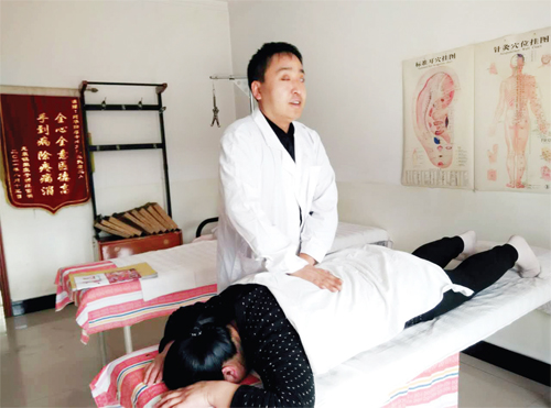 “黑夜給了我黑色的眼睛,我卻用它來(lái)尋找光明?!睂?duì)于神池縣怡園小區(qū)雙目失明的殘疾人劉建華、任慧榮夫婦來(lái)說(shuō),來(lái)到世間四十多年,雖然飽受失明的痛苦,但他們身殘志堅(jiān),自食其力,苦學(xué)手藝,服務(wù)眾人,讓生活充滿(mǎn)光明。1997年從太原盲人職業(yè)高中畢業(yè)以來(lái),20年間夫妻倆先后輾轉(zhuǎn)廣東、山西等省,服務(wù)患者萬(wàn)余人,廣受好評(píng)。圖為劉建華為患者治療。(鄭志東 攝影報(bào)道)