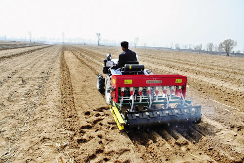 3月18日,原平市新原鄉(xiāng)小河村,一名農機手正在播種小麥,田野上一臺臺正在作業(yè)的農業(yè)機械呈現(xiàn)出一派“鐵牛鬧春”的繁忙景象。(趙月仁 攝)