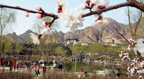 4月4日,游客在原平市天牙山風景區(qū)踏青游園。清明小長假,該市各公園正值早春花卉盛花期,游客在此賞花觀景,感受春的氣息。(褚震 攝)