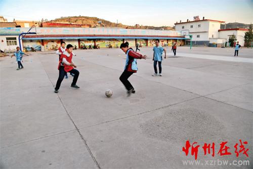 隨著《中國足球改革發(fā)展總體方案》的出臺,靜樂縣將足球作為學(xué)校體育課必修內(nèi)容,以加快推進(jìn)校園足球運(yùn)動全面開展。圖為該縣利民小學(xué)足球興趣班學(xué)生在放學(xué)后踢足球的場景。(閆曉梅 攝)