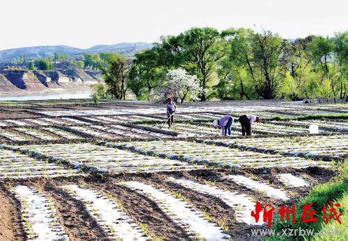 谷雨前后,點(diǎn)瓜種豆。4 月24 日,河曲縣文筆鎮(zhèn)唐家會(huì)村一戶(hù)村民正在剛出苗的玉米地里套種豆角。該村充分利用緊鄰黃河、灌溉便利的有利條件,通過(guò)實(shí)行地膜全覆蓋和套種等方式最大限度地提高土地收益。這一帶種植的玉米、豆角、大蒜等多種瓜菜類(lèi)經(jīng)濟(jì)作物,尤其大蒜在周邊很有名氣,成為城區(qū)及周邊瓜菜等農(nóng)產(chǎn)品的重要供應(yīng)地之一。(鄔耿杰 攝)