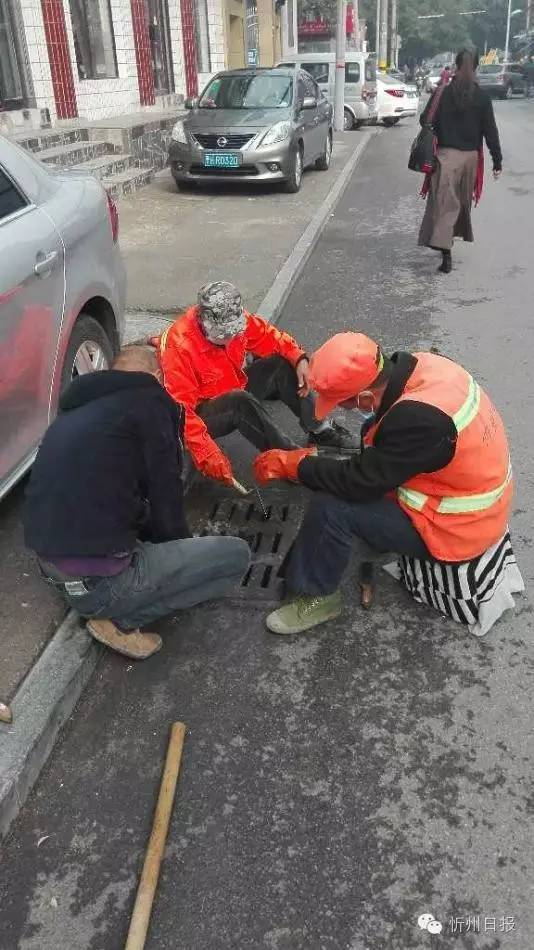 圖為忻州市中心醫(yī)院職工利用下班時間在撿煙蒂。