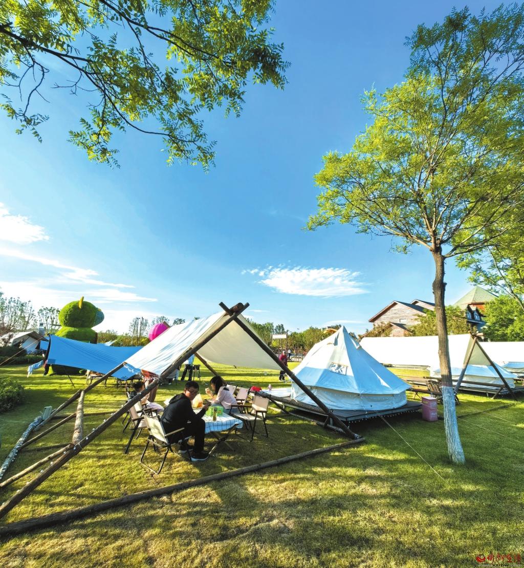 夏日的云中河景區(qū),陽光明媚,綠樹成蔭。沿著云中河畔走進(jìn)牧馬橋西北角的露營營地,清新的空氣令人愜意。市民們?nèi)齼蓛山Y(jié)伴而來,搭著帳篷,喝茶聊天,孩子們在草地上奔跑著放飛氣球,人們在這里盡情享受夏日的美好時(shí)光。(曹建華攝)