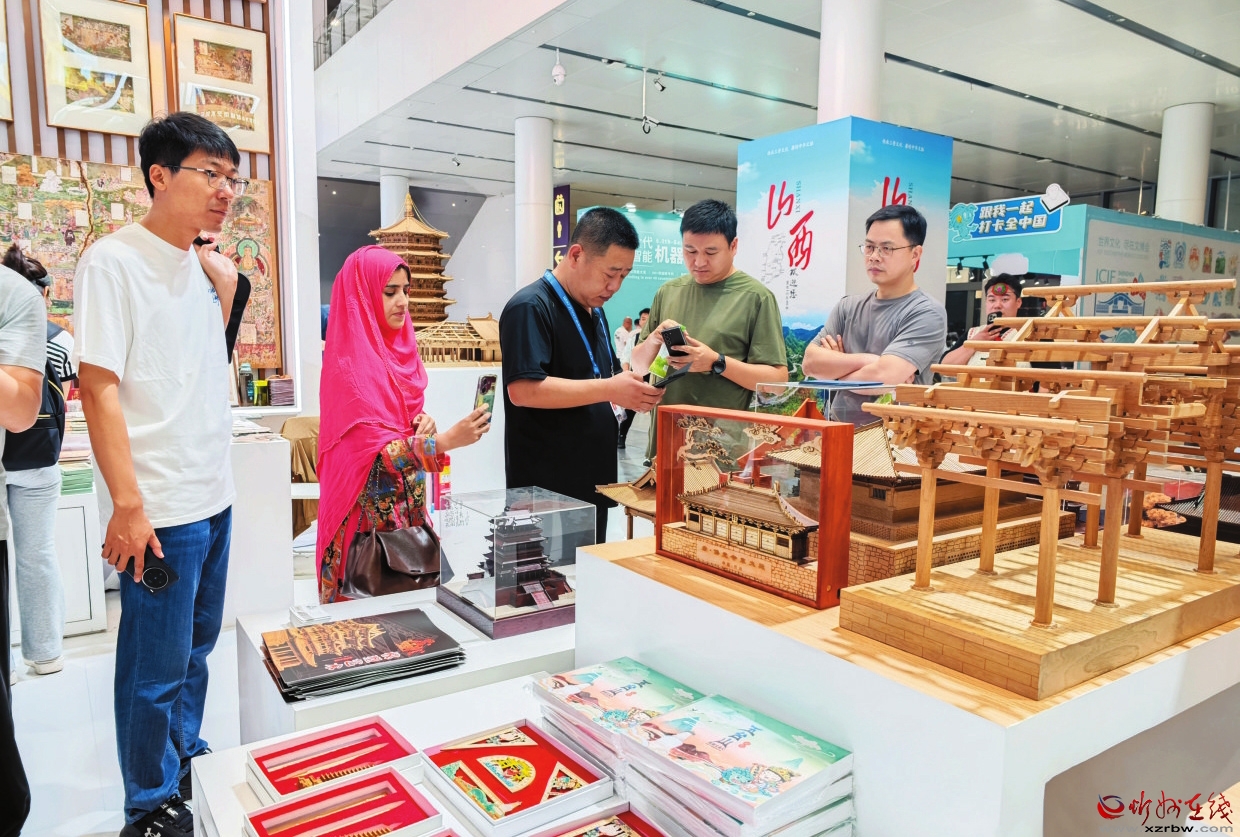 我市古建筑模型、文創(chuàng)產(chǎn)品受到參會嘉賓青睞。記者魏鵬飛攝