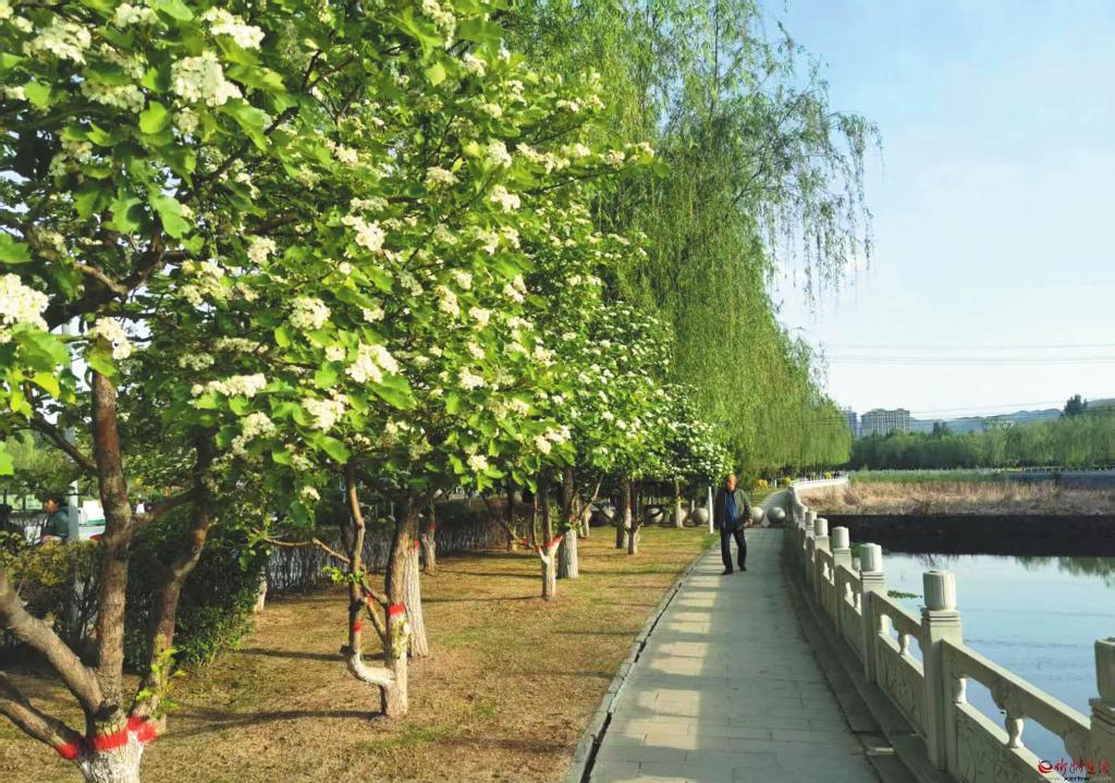 初夏時節(jié),五臺縣城濕地公園的山楂樹花開正盛。一團團、一簇簇,瑩白如雪,芳香彌漫,引得市民紛紛駐足觀賞。(金俊賢攝)