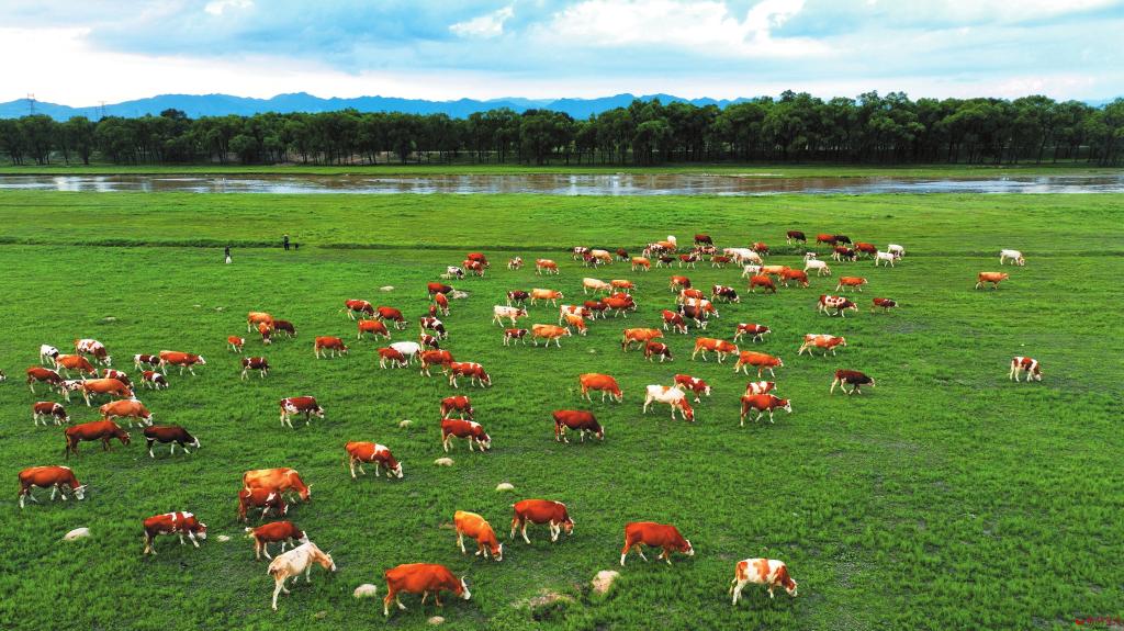 河水長,牧草肥,牛兒壯。定襄縣受祿鄉(xiāng)因地制宜扶持養(yǎng)殖專業(yè)戶做大做強(qiáng),在沿滹沱河沖擊扇的鹽堿荒灘地帶規(guī)劃出片區(qū)大力發(fā)展肉牛養(yǎng)殖業(yè)。(張晉蘭攝)