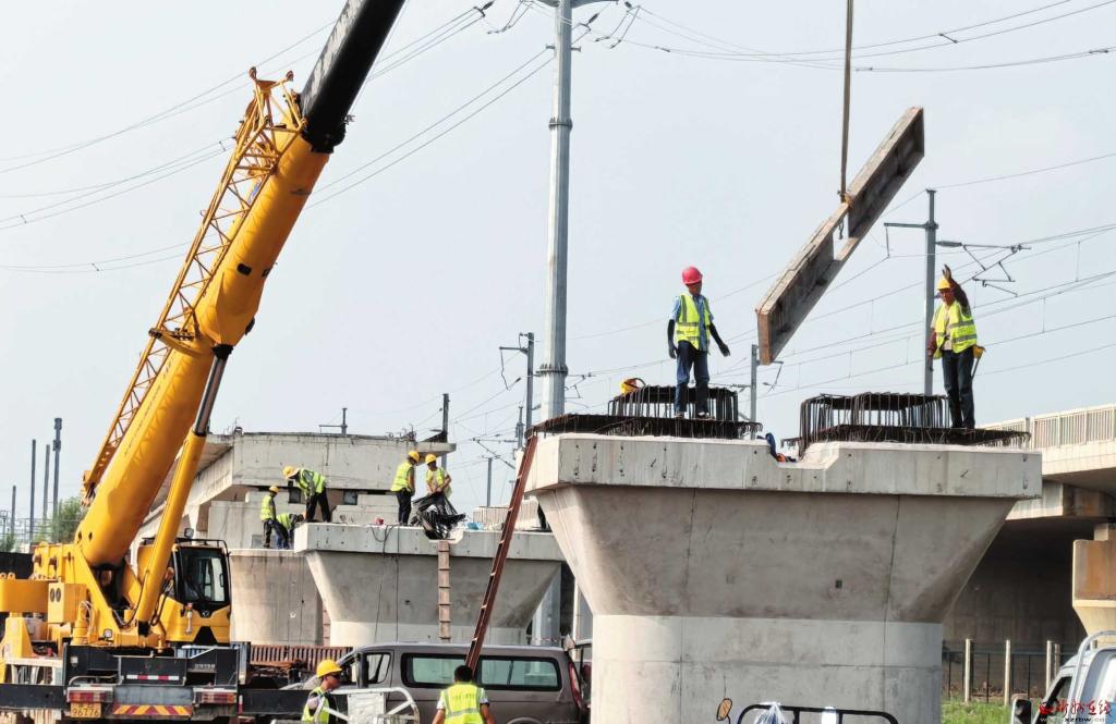7月23日,在忻府區(qū)小奇村北,由中國(guó)鐵建第十七工程局承建的雄忻高鐵高架橋正在緊張施工中。雄忻高鐵在我市境內(nèi)總長(zhǎng)115公里,預(yù)計(jì)2027年建成通車(chē),將成為忻州聯(lián)通京津冀的戰(zhàn)略通道。 (記者 劉紀(jì)森攝)
