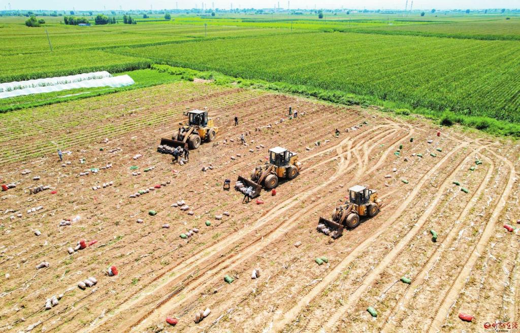 7月25日,農(nóng)機(jī)手駕駛鏟車在忻府區(qū)北肖村的田里收獲土豆。盛夏時節(jié),我市農(nóng)民搶抓農(nóng)時,做好農(nóng)作物的田間管理和采收。 (記者 范琛攝)