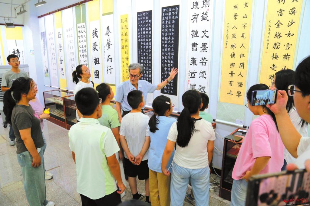 展廳里墨香四溢、丹青煥彩,一幅幅作品吸引著參觀者駐足欣賞。剛上初中的邵琢雯站在自己的作品《世外桃源》前,難掩自豪地說(shuō):“我想通過(guò)畫(huà)筆展現(xiàn)家鄉(xiāng)的懸空村美景。這幅畫(huà)我畫(huà)了整整兩個(gè)月,運(yùn)用了傳統(tǒng)山水畫(huà)技法,從構(gòu)思到落筆改了好幾次。繪畫(huà)讓我更深刻地感受到家鄉(xiāng)山水的魅力。”
