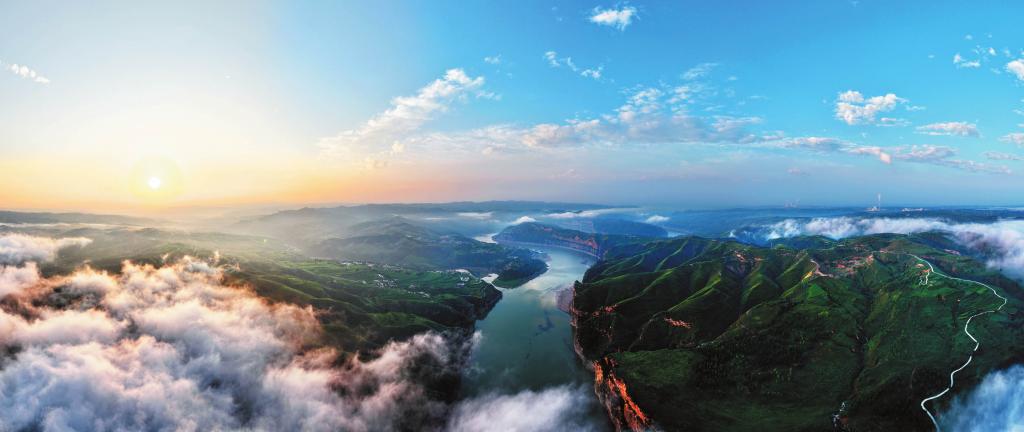 8月1日,被譽(yù)為“黃河入晉第一灣”的偏關(guān)老牛灣景區(qū)再現(xiàn)壯美日出云海奇觀。這里天藍(lán)水清,植被豐茂,常現(xiàn)云海蒸騰、朝霞浸染的如畫景致,這醉人的美景,正是“綠水青山就是金山銀山”的生動(dòng)詮釋。(記者馮曉磊攝)