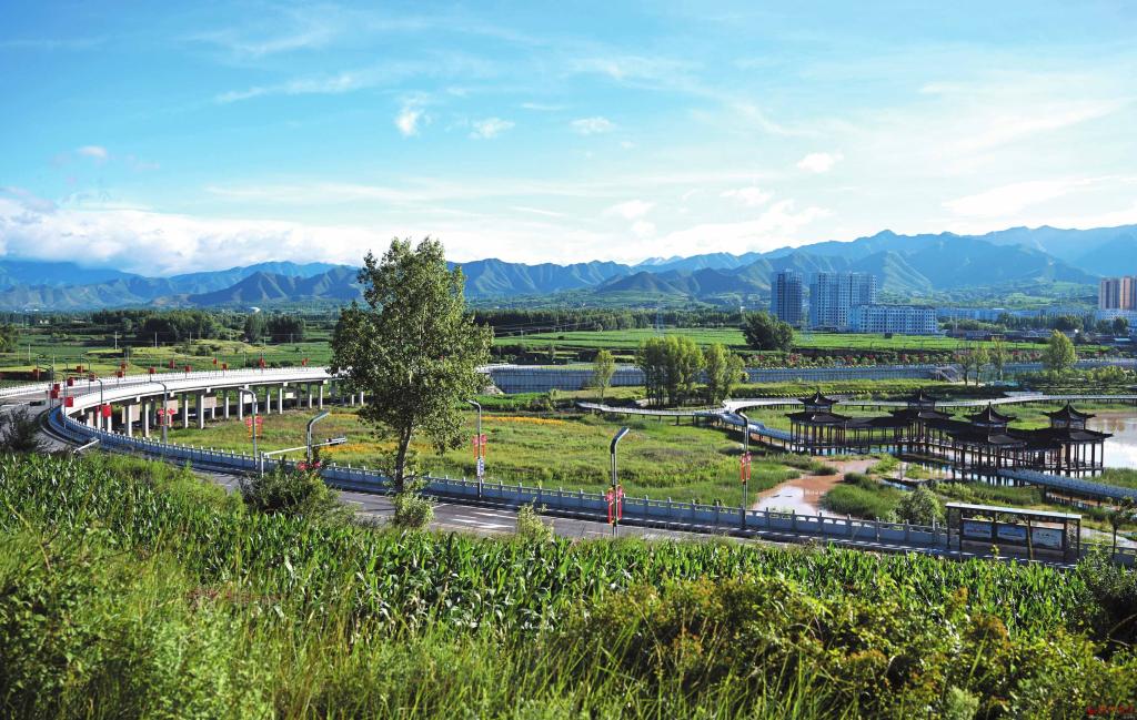 為拓展發(fā)展空間、拉大城市框架,五臺(tái)縣圍繞瀛湖、濕地、玉軒、文昌山等公園新建環(huán)城路,并在各個(gè)路段因地制宜配建文化景點(diǎn)、山水橋梁、游園、健身廣場(chǎng)、步道長(zhǎng)廊等設(shè)施,繪就一幅“路在景中、景在城中”的城市立體畫(huà)卷。圖為北城區(qū)一景。(金俊賢攝)