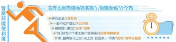 近日,記者從太原市政府新聞辦召開(kāi)的新聞發(fā)布會(huì)上獲悉,山西省營(yíng)商環(huán)境整體評(píng)估報(bào)告顯示,去年太原市營(yíng)商環(huán)境便利度綜合排名第1,領(lǐng)跑全省11個(gè)市;在國(guó)家發(fā)改委組織的對(duì)包括直轄市、計(jì)劃單列市、省會(huì)城市在內(nèi)的41座城市進(jìn)行的營(yíng)商環(huán)境評(píng)價(jià)中,太原市營(yíng)商環(huán)境便利度獲評(píng)優(yōu)良。