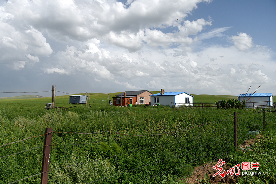 在其日麥拉圖家附近還有三所小房子,這是其日麥拉圖給自己的三個(gè)兒子準(zhǔn)備的。“兒子們都在旗里買了新房子、新車子,有時(shí)候也會(huì)帶著兒媳婦、孫子來(lái)牧場(chǎng),和我們一起養(yǎng)牛、養(yǎng)馬?!眻D為2020年8月2日,其日麥拉圖家。(潘迪攝/光明圖片)