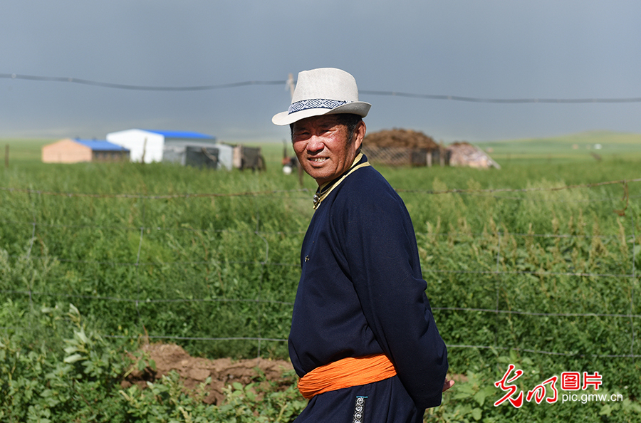 光明網(wǎng)訊(記者 趙艷艷 潘迪 李剛)提起其日麥拉圖,在陳巴爾虎旗的牧民中可謂無(wú)人不知、無(wú)人不曉。60年前,其日麥拉圖作為一名上海孤兒被內(nèi)蒙古自治區(qū)接到草原撫養(yǎng);60年來(lái),其日麥拉圖加入了黨組織,于1995年擔(dān)任陳巴爾虎旗東烏珠爾蘇木海拉圖嘎查書記,一干就是八年。圖為2020年8月2日,其日麥拉圖在自家牧場(chǎng)。(潘迪攝/光明圖片)