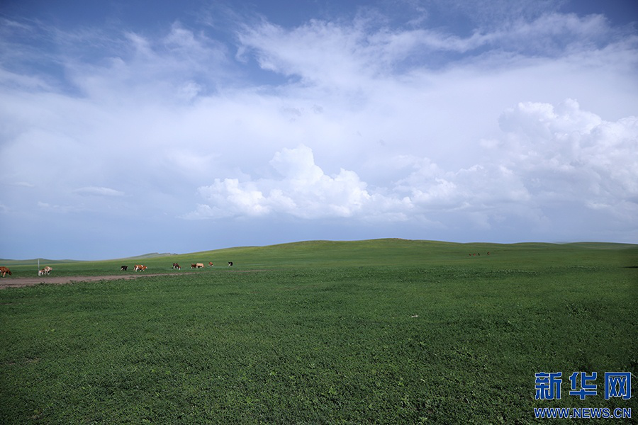 8月的呼倫貝爾草原一碧萬頃。新華網(wǎng)記者 焦鵬攝