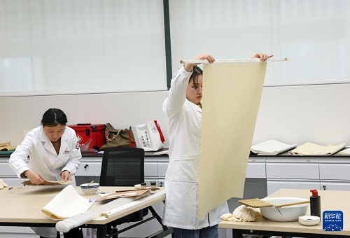 3月26日,選手在參加“紙張書畫文物修復(fù)”實(shí)操考核。(新華社記者 劉穎 攝)