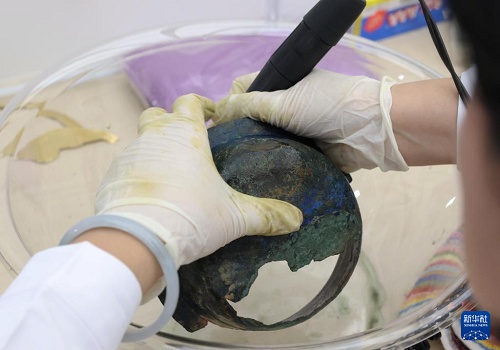 3月26日,選手在參加“金屬文物修復(fù)”實(shí)操考核。(新華社記者 劉穎 攝)