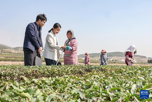 3月26日,山東省日照市紀(jì)檢監(jiān)察干部在嵐山區(qū)巨峰鎮(zhèn)向茶農(nóng)了解相關(guān)情況。(新華社發(fā) 朱元理 攝)