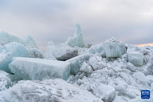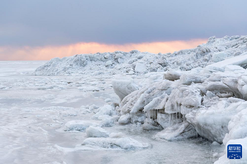 這是3月31日拍攝的興凱湖畔的冰層。(新華社記者 謝劍飛 攝)