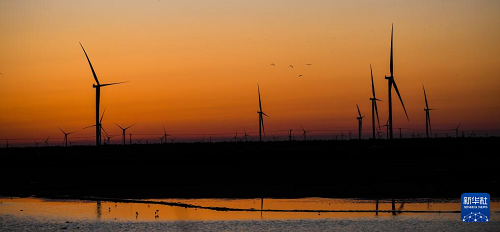 這是2023年9月1日拍攝的鹽城東臺條子泥濕地日出景色(無人機照片)。(新華社記者 季春鵬 攝)