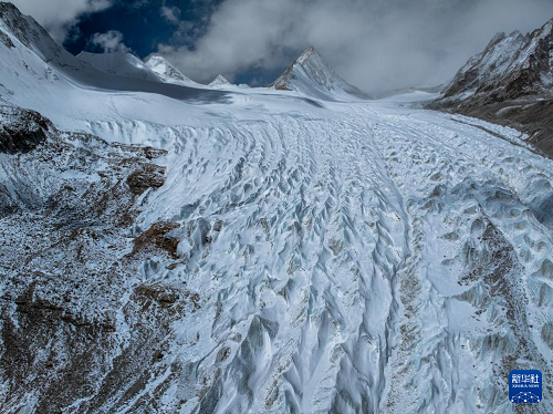 空中俯瞰普拉喜瓊峰及曲隆嘎木冰川(4月13日攝,無人機(jī)照片)。(新華社發(fā) 董志雄 攝)
