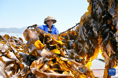 近日,“中國(guó)海帶之鄉(xiāng)”福建省霞浦縣35萬(wàn)畝海帶迎來(lái)采收季節(jié)。在霞浦縣沙江鎮(zhèn),養(yǎng)殖戶們利用晴好天氣和潮汐便利,晝夜搶收搶曬海帶,海上岸邊一派繁忙豐收景象。2024年,霞浦全縣鮮海帶總產(chǎn)量160多萬(wàn)噸,總產(chǎn)值約35億元,海帶相關(guān)產(chǎn)業(yè)就業(yè)人員達(dá)5萬(wàn)余人,成為帶動(dòng)當(dāng)?shù)厝罕娫鍪?、促進(jìn)鄉(xiāng)村振興的重要支柱產(chǎn)業(yè)。