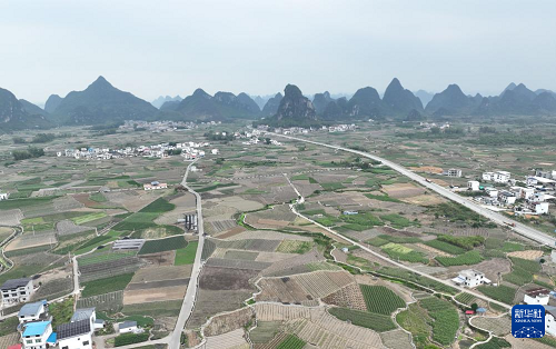 這是廣西柳州市柳江區(qū)三都鎮(zhèn)覺山村的蔬菜種植基地(無人機(jī)照片,4月26日攝)。(新華社發(fā) 鄭昌昊 攝)
