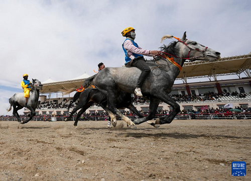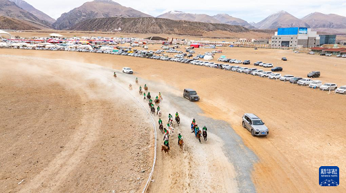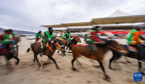 4月27日,騎手在進行賽馬比賽。(新華社記者 晉美多吉 攝)