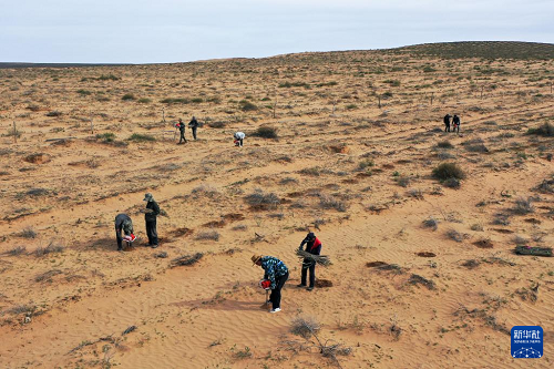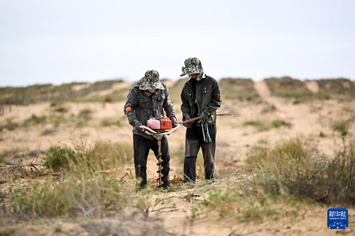 連日來,在內(nèi)蒙古鄂爾多斯市杭錦旗境內(nèi)的庫布其沙漠里,治沙工人忙著栽種沙柳、檸條等沙生植物,開展庫布其沙漠生態(tài)治理。今年以來,杭錦旗多舉措打好“三北”工程攻堅戰(zhàn),實施建設(shè)庫布其沙漠鎖邊林草帶、風(fēng)沙路徑阻隔帶等5個治沙項目,計劃年內(nèi)完成治沙任務(wù)100萬畝以上。