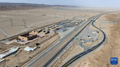 這是4月29日拍攝的敦煌懸泉置遺址景區(qū)。景區(qū)依托G3011柳格高速甜水井停車區(qū)而建,集高速服務(wù)、游客體驗(yàn)、文化展陳、特色商業(yè)等功能于一體(無(wú)人機(jī)照片)。(新華社記者 郎兵兵 攝)
