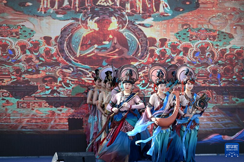 4月29日,演員在懸泉置遺址景區(qū)開(kāi)園儀式上表演。(新華社記者 郎兵兵 攝)