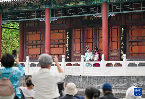 5月5日,2025“邂逅·天津——戲曲街角”攜京劇《西廂記》走進(jìn)擁有160多年歷史的天津人民公園。來(lái)自天津京劇院與天津歌舞劇院的演員在公園內(nèi)巧妙利用園林空間層次,為市民游客在假期內(nèi)帶來(lái)“游園+賞戲”的沉浸式戲曲文化體驗(yàn)。