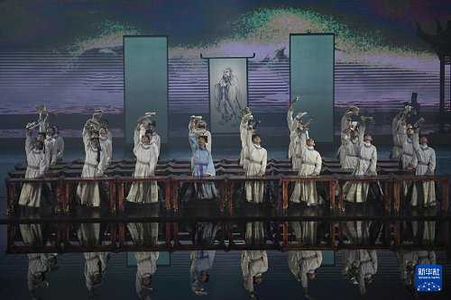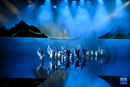 5月8日,大型文旅舞臺(tái)劇《月映武夷》演員在演出。(新華社記者 姜克紅 攝)