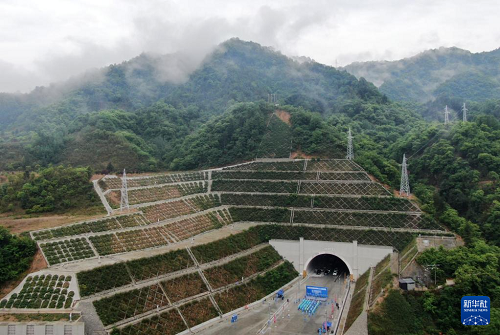 5月13日拍攝的西康高鐵秦嶺九天山隧道(無人機照片)。(新華社記者 李一博 攝)