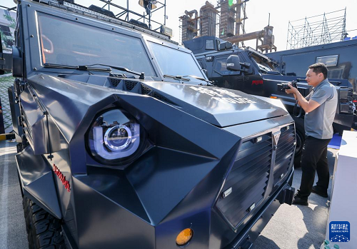 5月14日,在第十二屆中國(guó)國(guó)際警用裝備博覽會(huì)上,觀眾在參觀拍攝警用車(chē)。(新華社記者 殷剛 攝)
