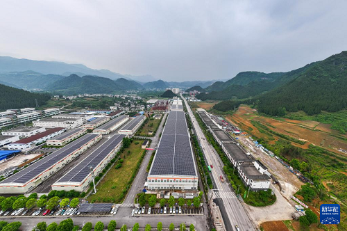 這是5月14日拍攝的貴州省江口縣貴茶產(chǎn)業(yè)園抹茶精制車間(無人機照片)。(新華社記者 楊文斌 攝)