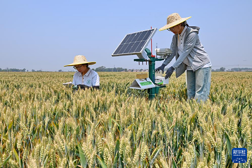 河北省曲周縣傅莊科技小院的學(xué)生在麥田里(5月26日攝)。(新華社記者 牟宇 攝)