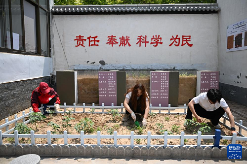 5月26日,河北省曲周縣傅莊科技小院的學(xué)生在小院的試驗(yàn)田里工作。(新華社記者 牟宇 攝)