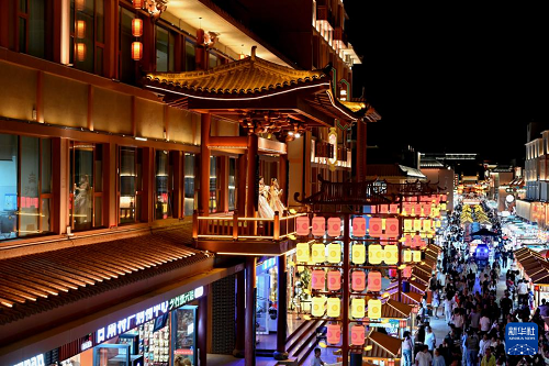 6月2日晚,游客在河北省唐山市豐南區(qū)河頭老街景區(qū)游玩。(新華社發(fā) 劉滿倉 攝)