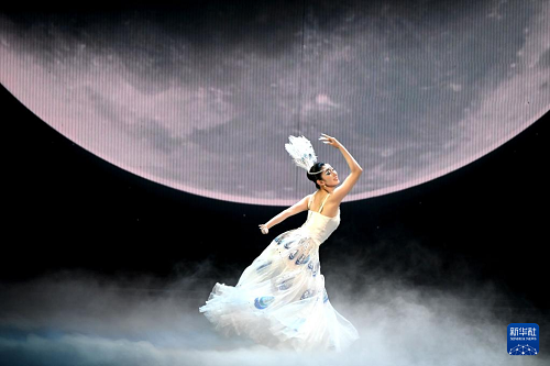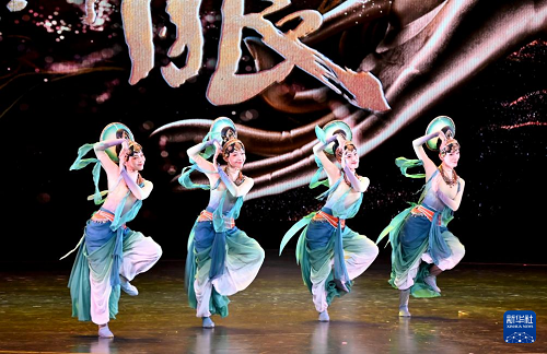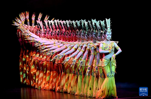 6月8日,中國(guó)殘疾人藝術(shù)團(tuán)演員在甘肅敦煌大劇院表演大型情景音畫(huà)劇《千手千眼》。(新華社發(fā) 張曉亮 攝)