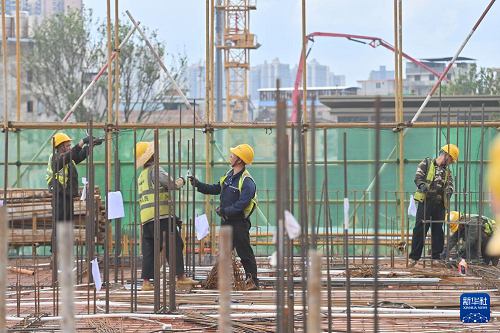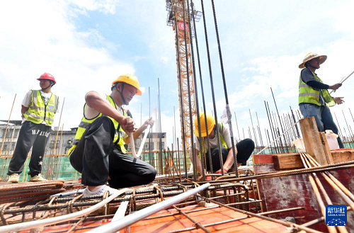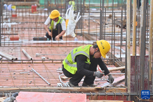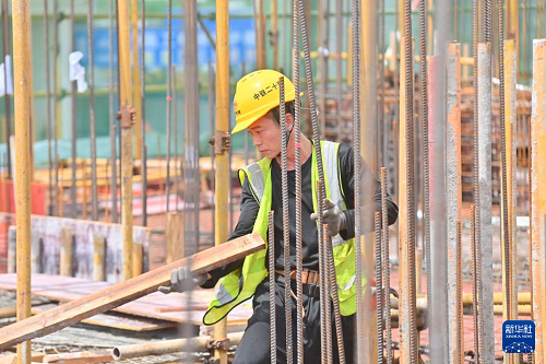 6月16日,中鐵二十局工人在南寧市雞村城中村改造項(xiàng)目建設(shè)現(xiàn)場(chǎng)施工作業(yè)。(新華社記者 黃孝邦 攝)