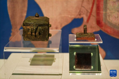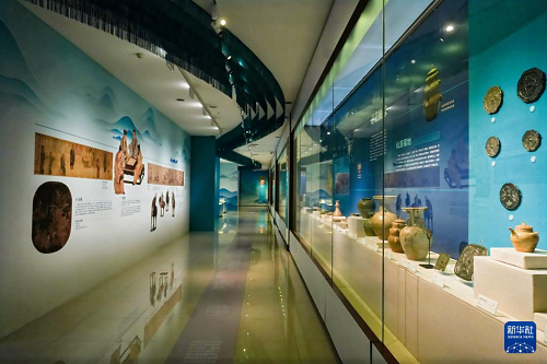 這是浙江紹興新昌博物館的“唐詩(shī)之路”展覽展出的文物(6月18日攝)。(新華社發(fā) 張瑞 攝)