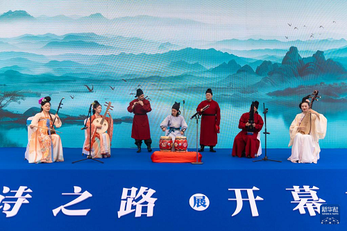 這是6月18日拍攝的浙江紹興新昌博物館的“唐詩(shī)之路”展覽開(kāi)幕式現(xiàn)場(chǎng)。(新華社發(fā) 張瑞 攝)