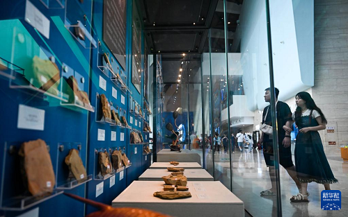 6月19日,觀眾在國家海洋博物館參觀“寒武紀的黎明—澄江生物群與生命多樣性的起源”主題展。(新華社記者 趙子碩 攝)