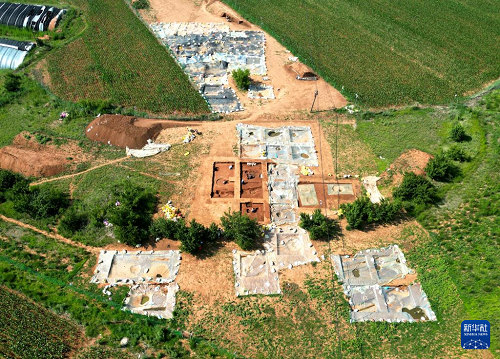 這是6月24日拍攝的東山頭遺址考古發(fā)掘現(xiàn)場(chǎng)(無(wú)人機(jī)照片)。(新華社發(fā) 河北省文物考古研究院供圖)