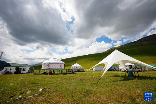 這是6月30日在阿禾公路旁拍攝的由當(dāng)?shù)卮迕窠?jīng)營(yíng)的餐飲氈房。(新華社記者 徐宏巖 攝)