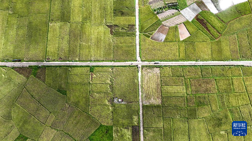 這是7月2日拍攝的廣西欽州市康熙嶺鎮(zhèn)的早稻田(無人機照片)。(新華社記者 張愛林 攝)