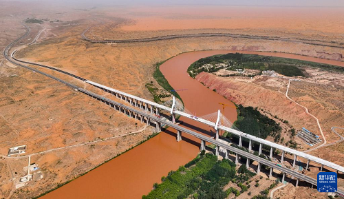 7月3日拍攝的黑山峽黃河特大橋(無人機照片)。(新華社記者 馮開華 攝)