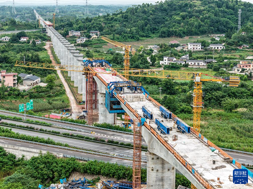 成渝中線高鐵重慶段最大跨度連續(xù)梁順利合龍